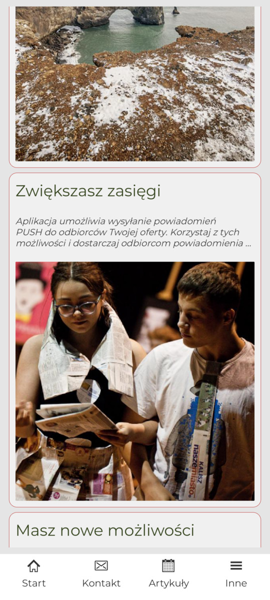 Aplikacja umożliwia wysyłanie powiadomień PUSH do odbiorców Twojej oferty. Korzystaj z tych możliwości i dostarczaj odbiorcom powiadomienia o nowościach, nowych wydarzeniach, zmianach w repertuarze.
